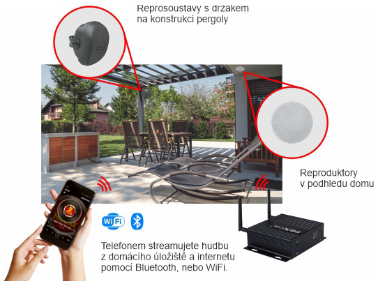 - autonomie (Chci, aby ozvučení na terase bylo zcela samostatné, nebo aby „poslouchalo“ hudbu z domu?)