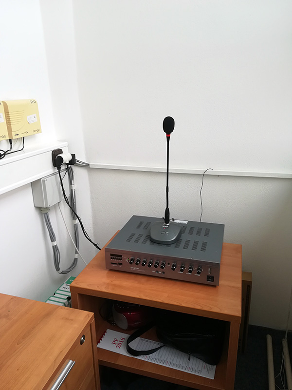 Rozhlasová ústředna Dexon JPA1652 ovládla tuto školu výměnou za již zastaralou Tesla AUA. Tak obrovský rozdíl ve velikosti nikdo nečekal,hned se řešilo co se vzniklým prostorem. Opět musím pochválit z úst zákazníka jednoduchou obsluhu, radost z dalších funkcí-bluetooth,rádio atd prostě funkce které stará ústředna již dávno měla porouchané. Staré linkové odpojovače si přáli zanechat ale jejich čas je již také sečten a bude se řešit jejich náhrada nebo vyřazení.