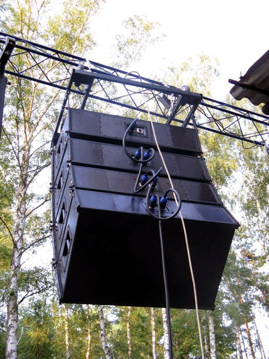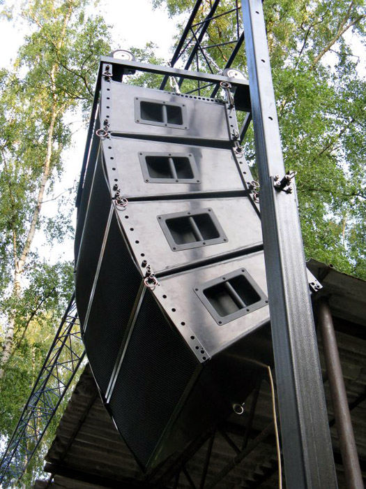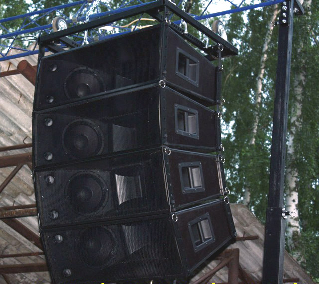 Naši vývojoví pracovníci zkonstruovali line array reprobox, který nese originální prvky uspořádaní reproduktorů, vhodné zejména pro optimální horizontální a vertikální vyzařovací charakteristiku. Je osazená dvěma 10G40 a dvěma 6MI100 reproduktory Beyma, a samozřejmě TPL150H. Systém je proveden třípásmově, buzen třemi zesilovači a řízen reproduktorovým procesorem. Je dokonale frekvenčně a fázově sladěn a díky tomu je jeho frekvenční charakteristika od 70Hz do 20kHz v rozmezí ±3dB (hodnoty obvyklé spíše v hi-fi technice – viz. diagram z měření). Zatížitelnost v jednotlivých pásmech: bass – 800W RMS, střed – 600W RMS, výšky – 80W RMS. Velikost bedny: 920 × 335 × 570mm, váha 45kg. Pro ozvučování rockové muziky je systém doplněn superbasovými boxy.