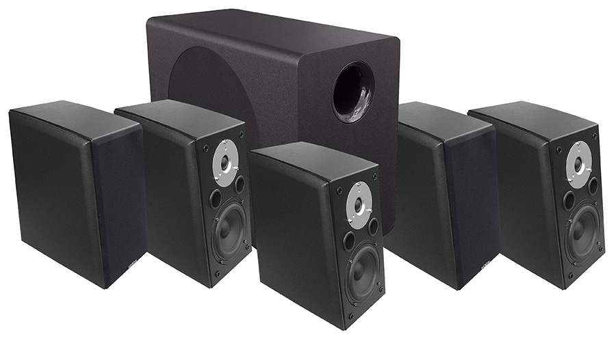 Stručný popis: 2× 35 / 80 W přední regálové reprosoustavy + 2× 35 / 80 W zadní regálové reprosoustavy + 200 / 400 W aktivní subwoofer, 35 – 20 000 Hz. Malá sestava s velkým zvukem