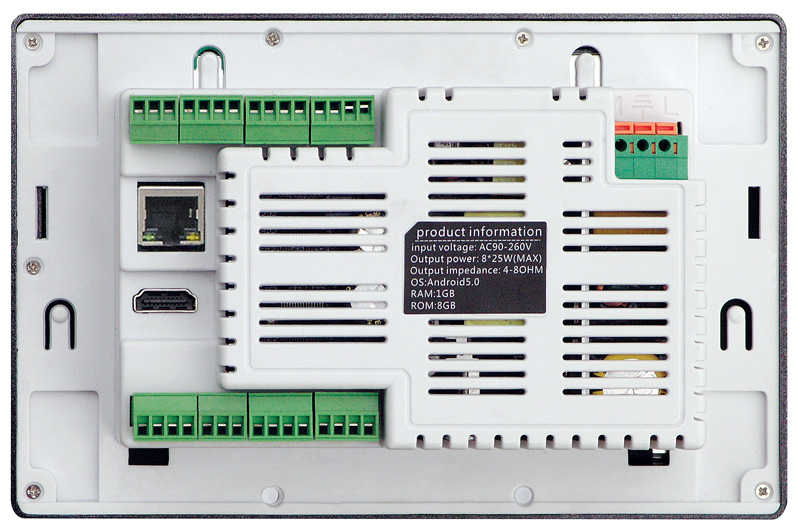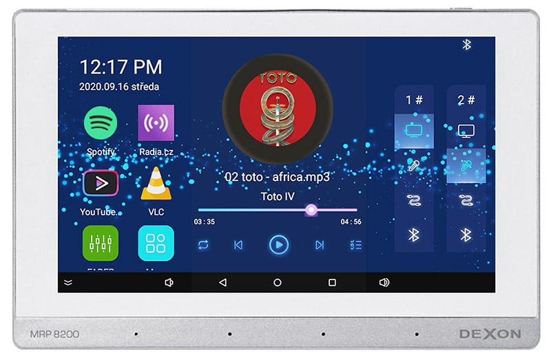 Stručný popis: 4× 20 W (dvě stereo zóny), 8 výstupů na reproduktory, v každé zóně jiná hudba, 7“ displej, softwarové equalizéry, multimediální přehrávač obrázků, hudby i videí (VLC Player, YouTube Vanced) z SD karty, USB, Lan i internetu, Internetové rádia a podcasty (Spotify, RadiaCZ, RadioBox), Bluetooth, AUX vstup, linkové výstupy na subwoofery a ext. zesilovače, Wifi, budík, kalendář, podpora DLNA / UpNP, AirPlay (E-share), otevřený systém Android, napájení přímo z 230 V