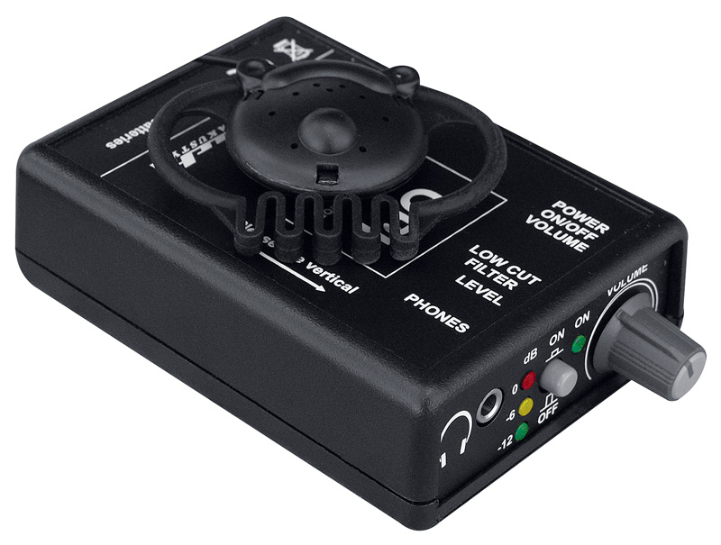 Stručný popis: vč. sluchátka, filtr pro omezení nízkých kmitočtů, nastavitelná hlasitost, indikace vybuzení, frekv. rozsah 85 – 6 000 Hz, doba provozu 100 h