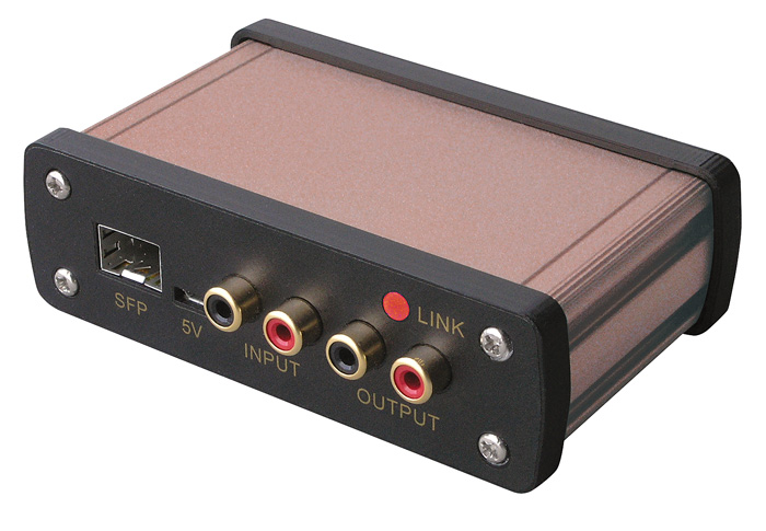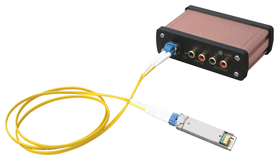 Stručný popis: digitální přenos audio signálu po optickém kabelu (vlákno singlemode SM), plně duplexní (jeden signál tam a druhý zpět), stereo, 24 b / 48 kHz D/A a A/D převodníky, oddělený přenos mimo LAN / WAN síť, point to point, max. délka propoje 20 km, kvalitní zvuk, velmi nízký šum (S/N odstup 108 dB) a nízká latence 0,5 ms