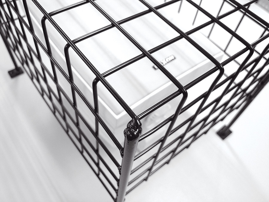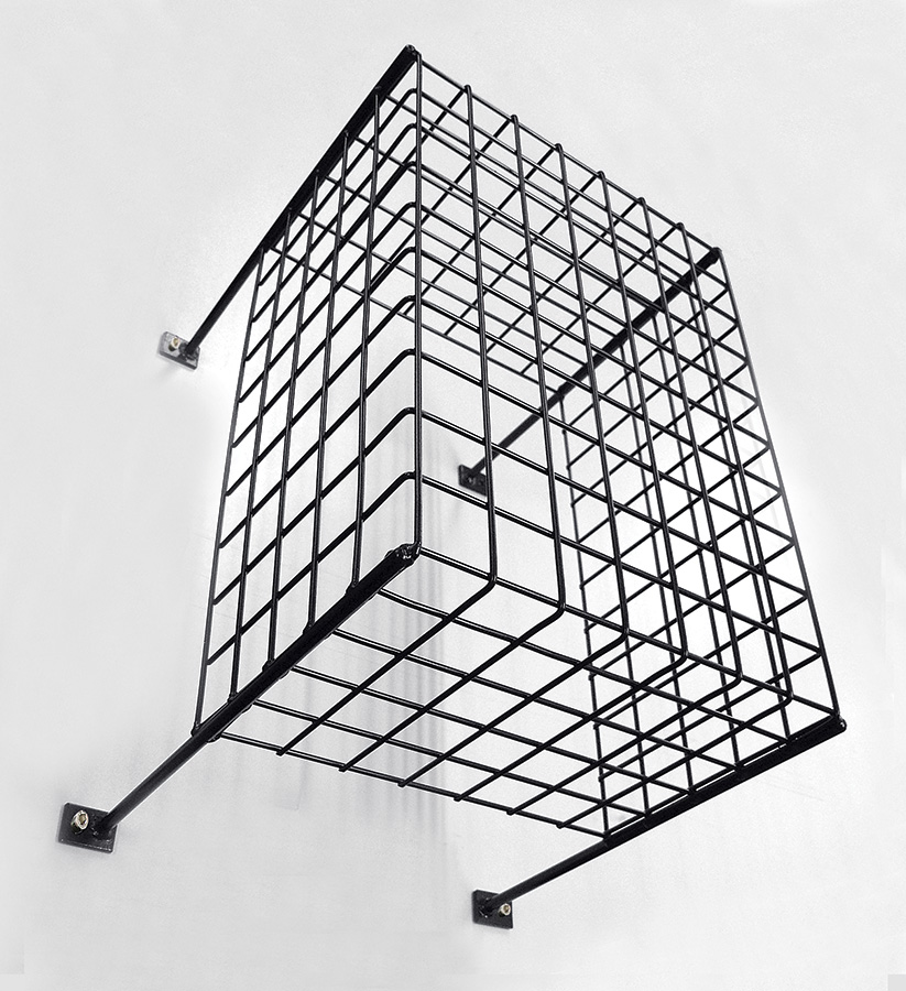 Stručný popis: ocelová konstrukce, kulatina Ø 4 a 11 mm, oko mříže 50 × 50 mm, 373 × 523 × 426 mm. Ochrana proti sportu i vandalům!