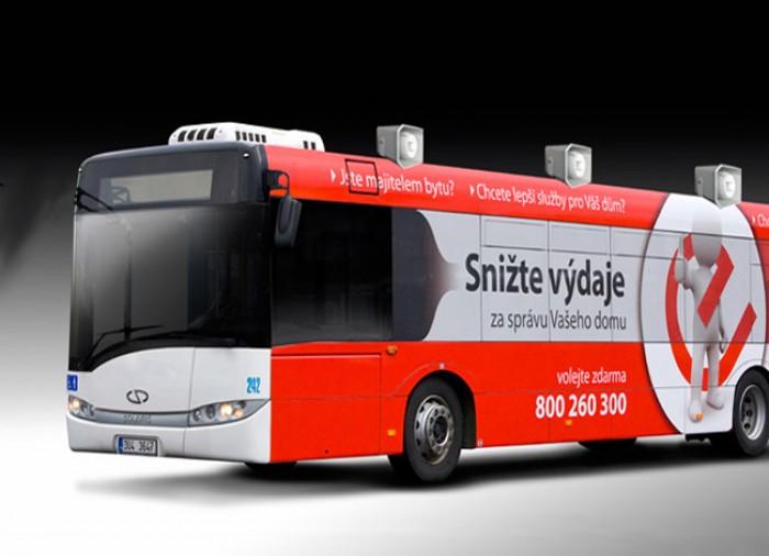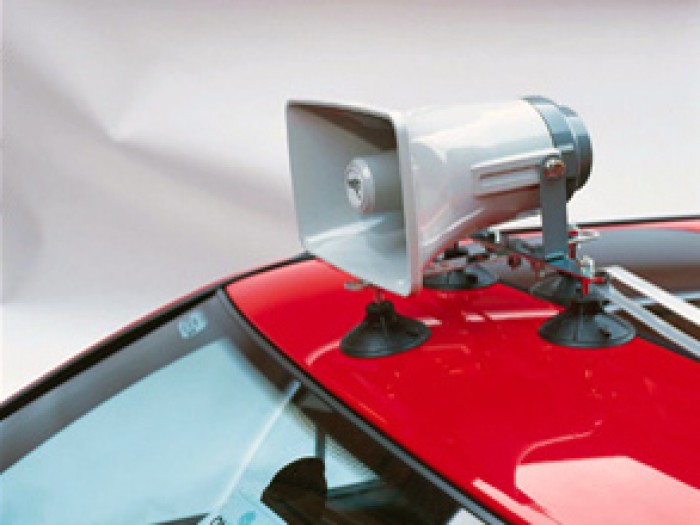 Článek se věnuje ozvučení na střeše autobusu, který se využívá u mítingů, reklamních a propagačních akcí politických stran, sdružení, ale i pojízdných prodejen či knihoven.